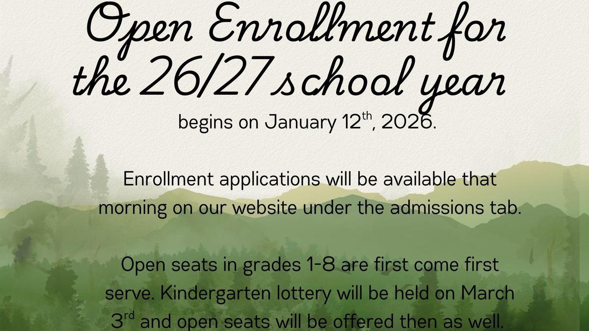 Open Enrollment for the 2026-2027 School Year opens on January 12th